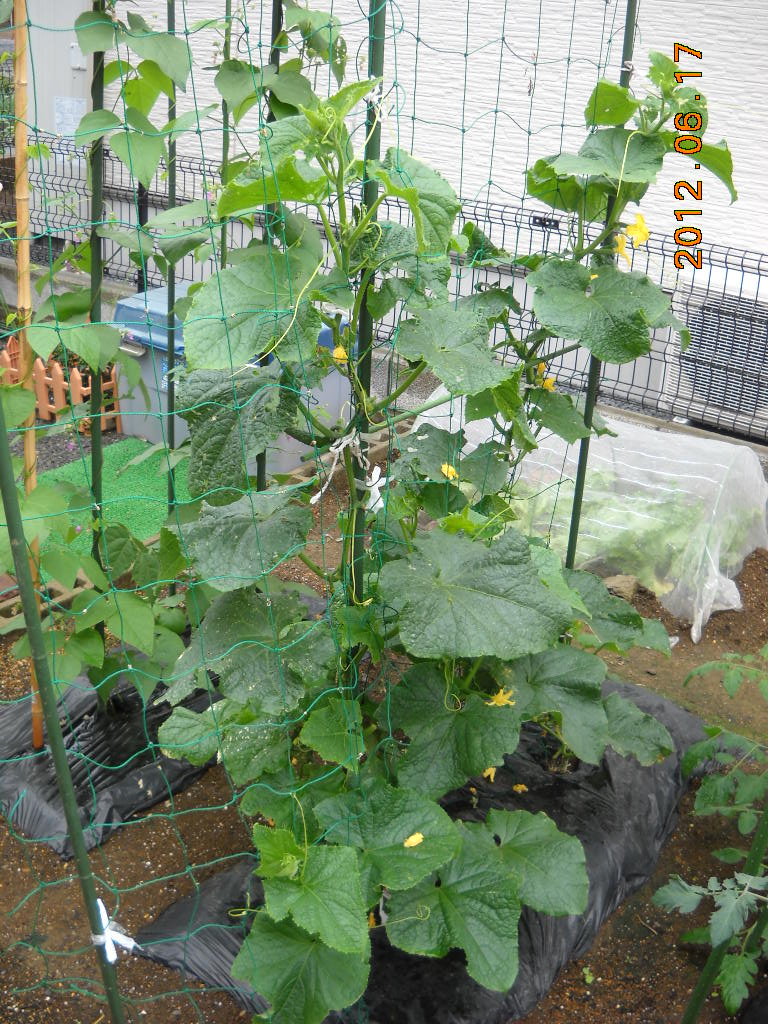 長い方のキュウリは元気な枝一本残して撤去したところ、再び実を着け始める。