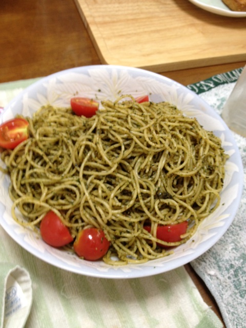 1週間休み3日目。天気もアレな感じなんで、庭に生えてるバジルでパスタを作る事に。