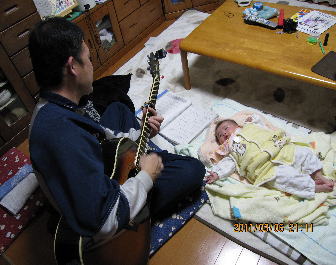 私のくしゃみでは泣いてしまうのに、枕元のギターでは寝てしまう次女を主な相手に。